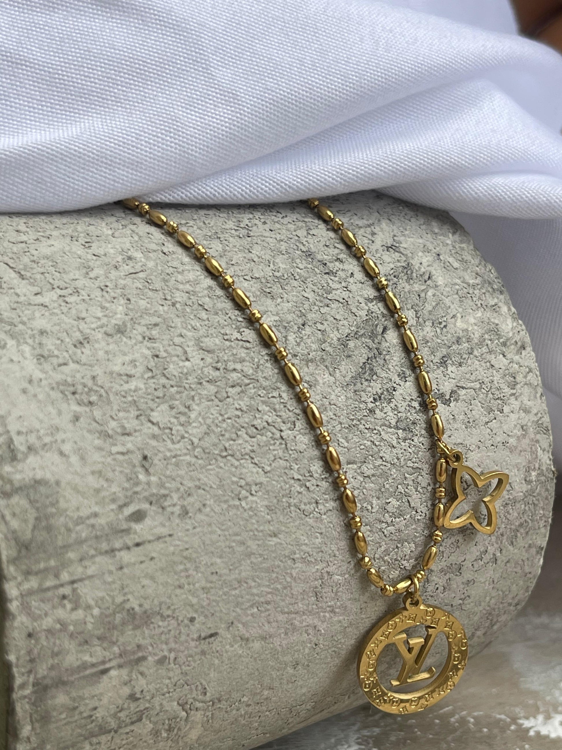 💖 Cadena LV con 2 Dijes para Dama – Doble Encanto, Doble Estilo ✨