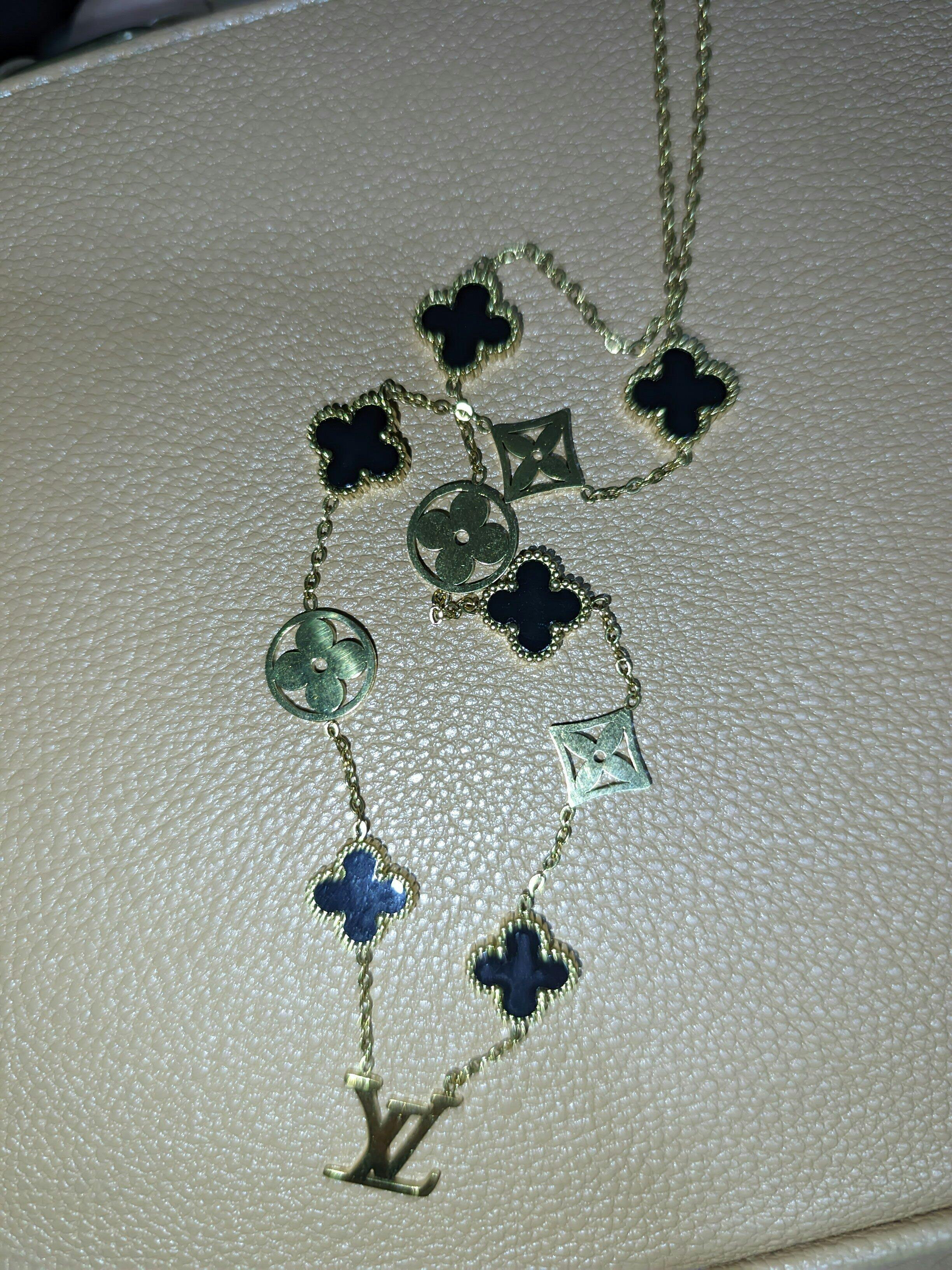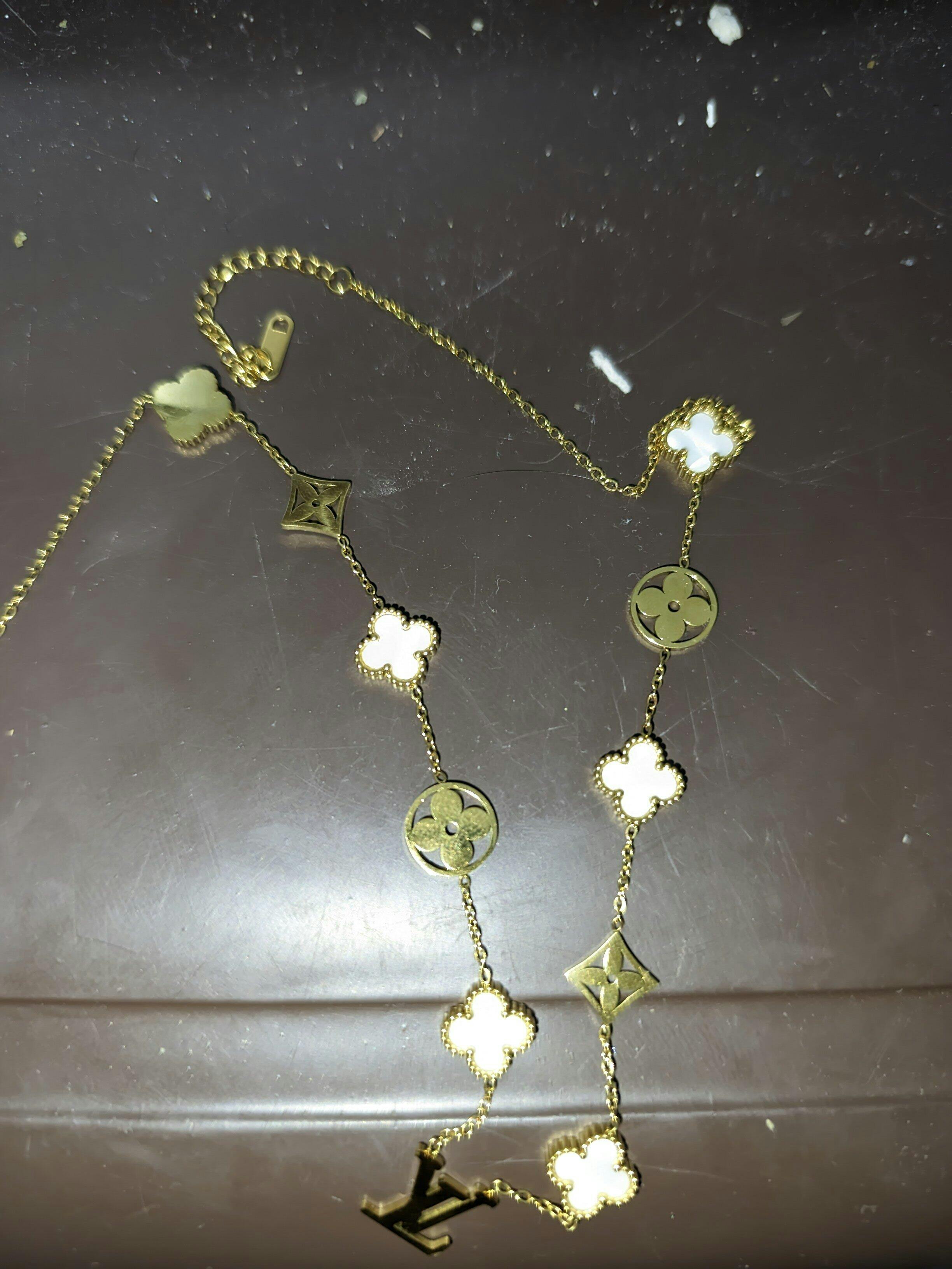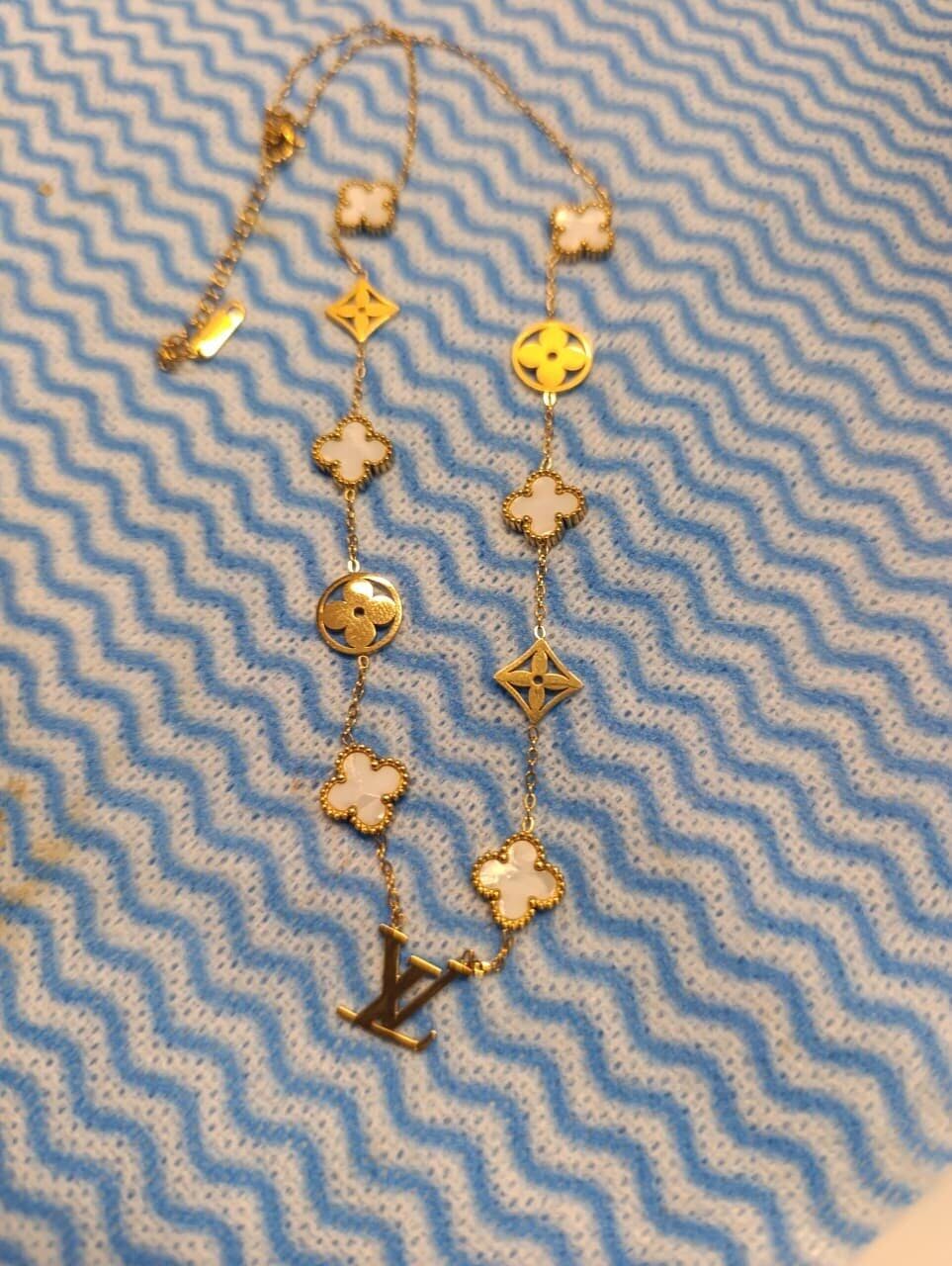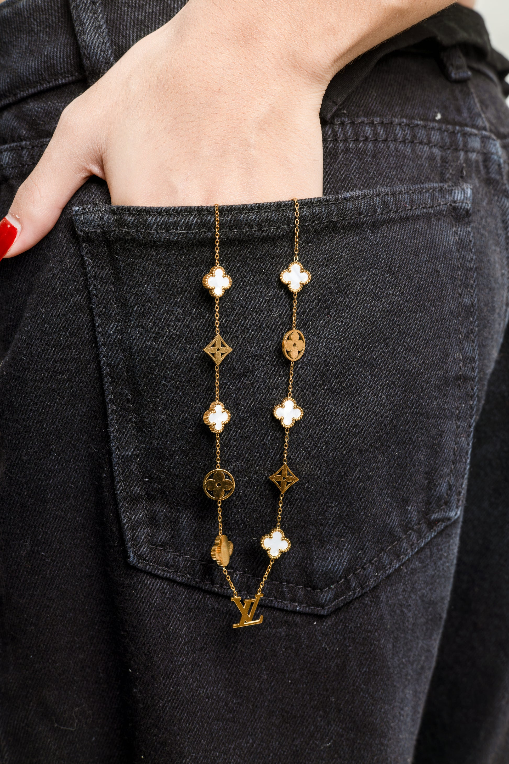 Con un diseño delicado de tréboles estilo LV, esta cadena no solo es un accesorio, ¡es una declaración de estilo! 🌸