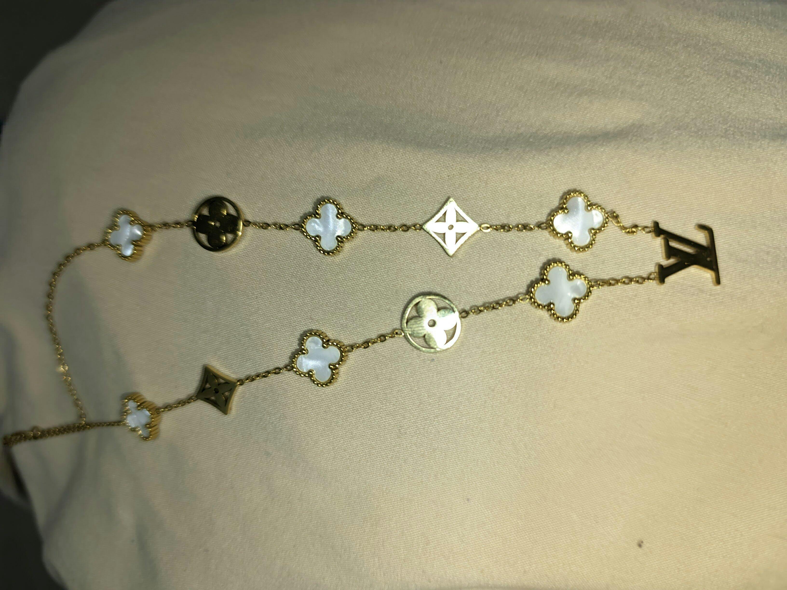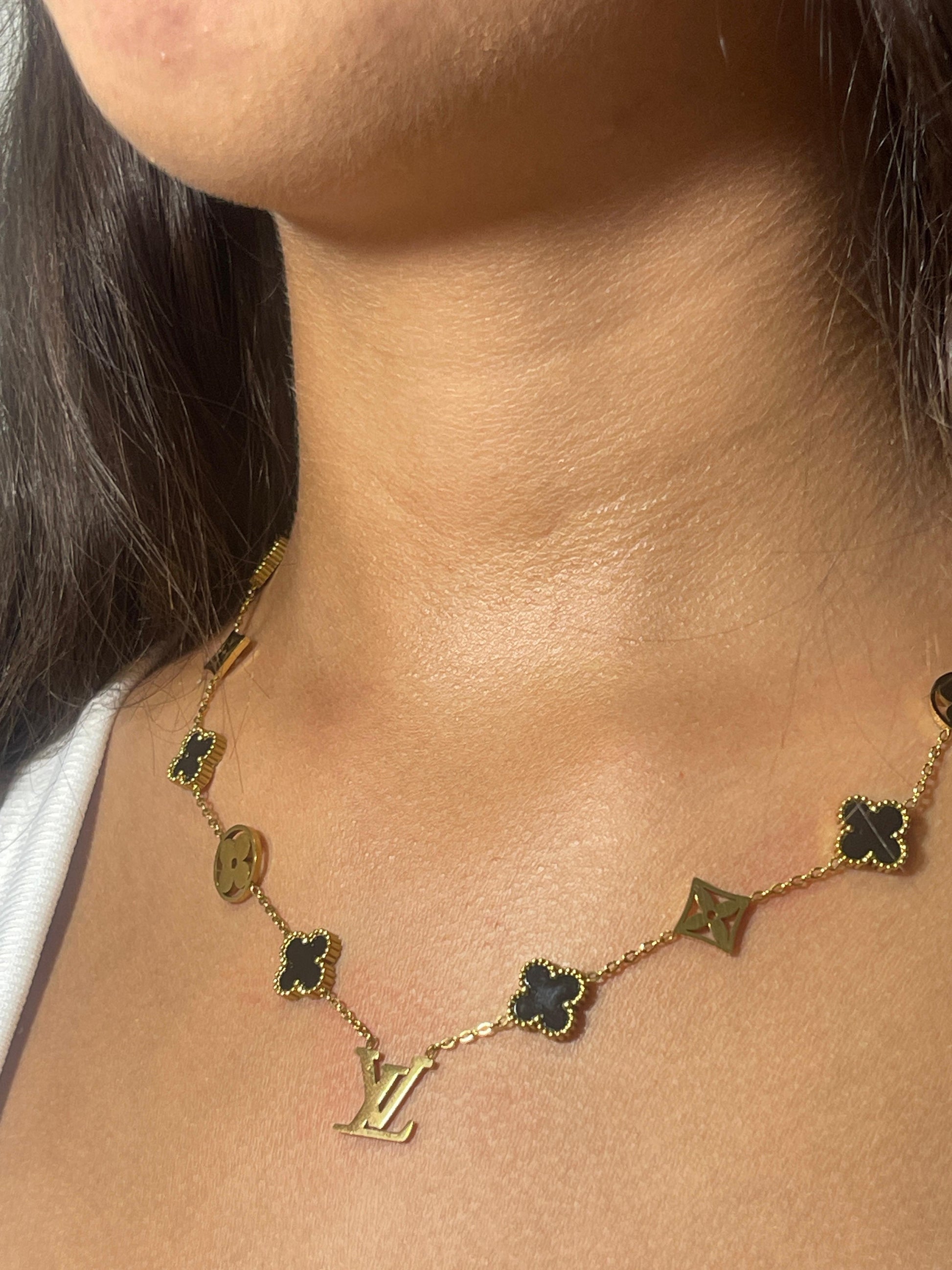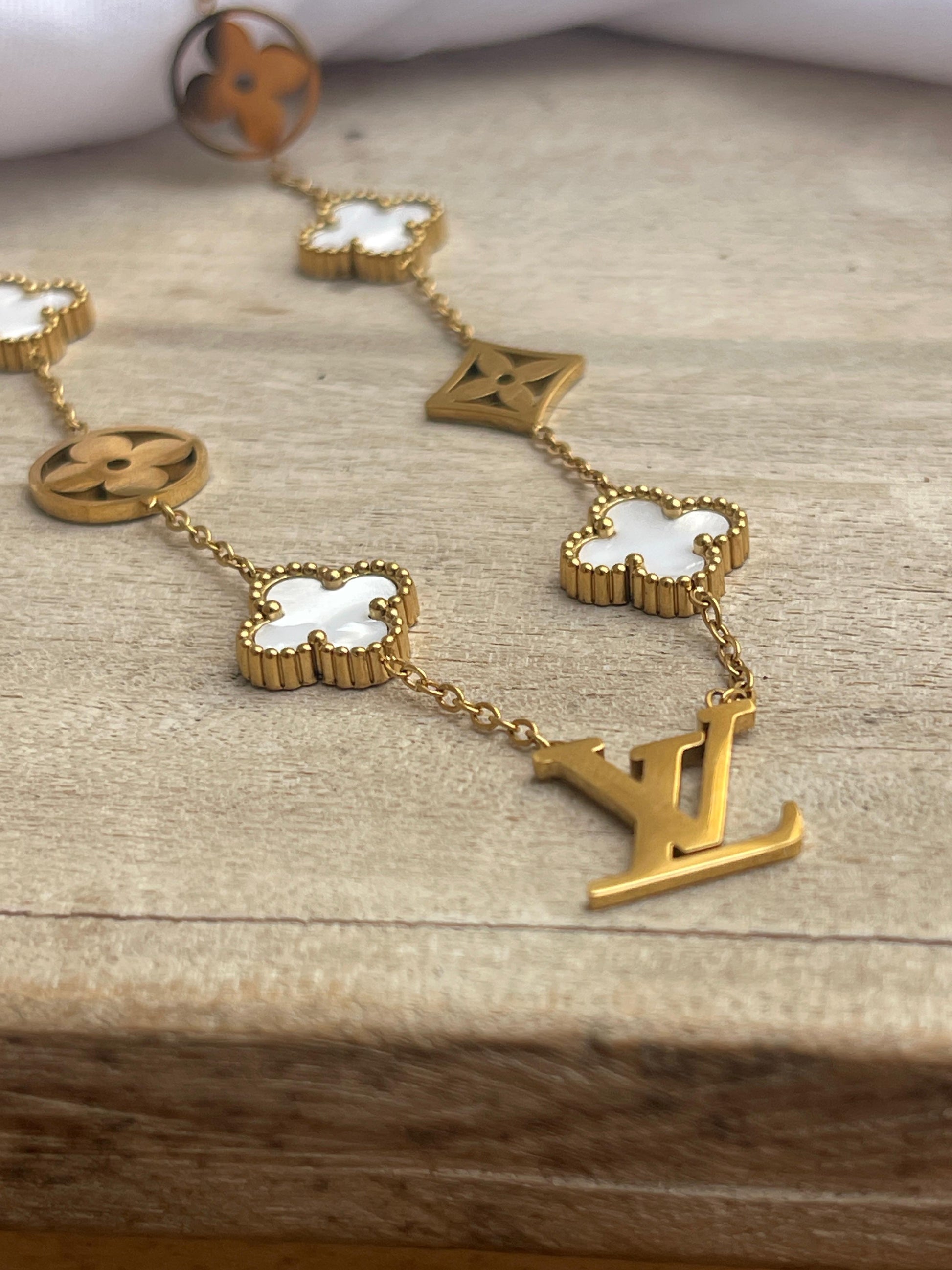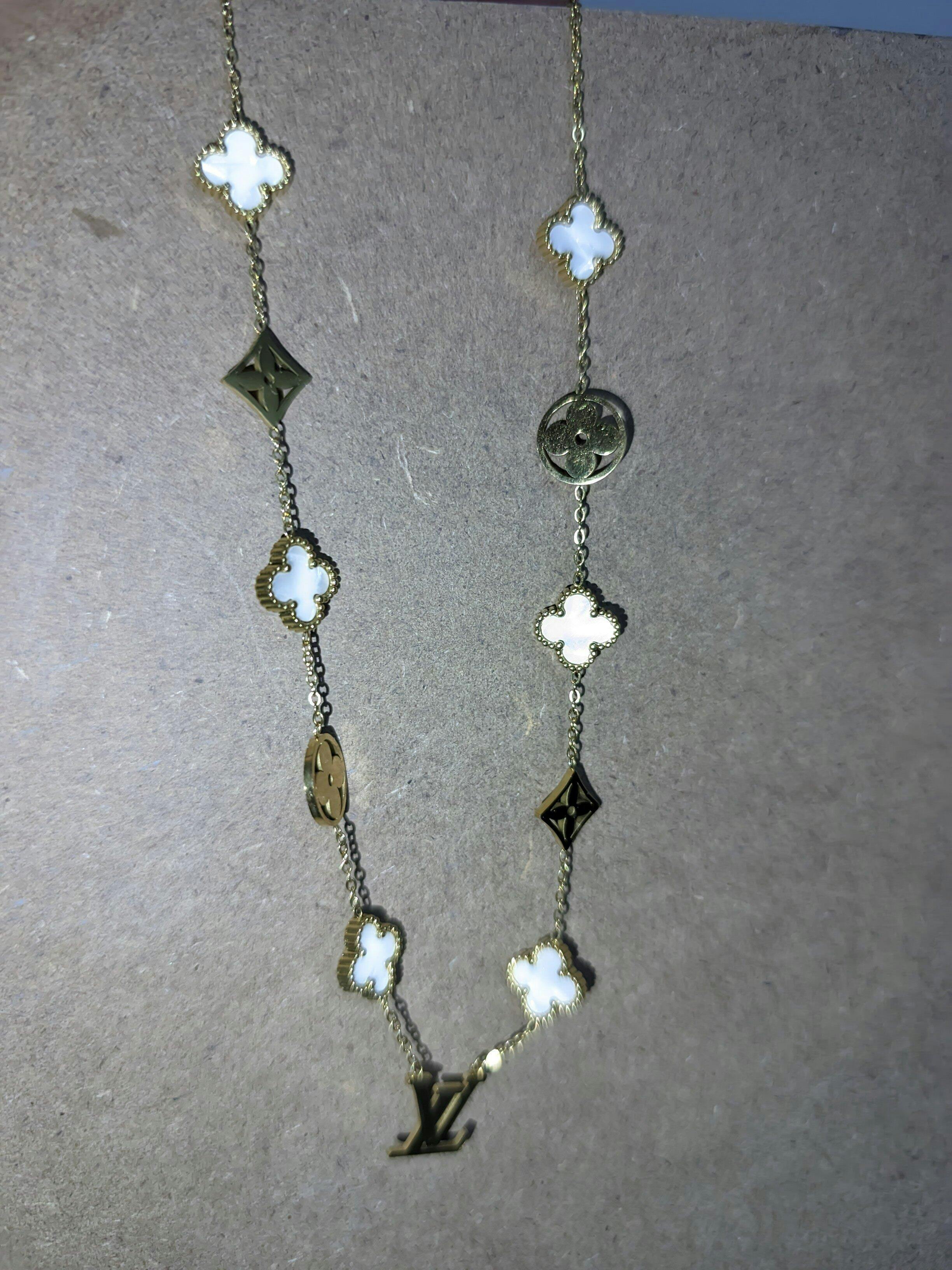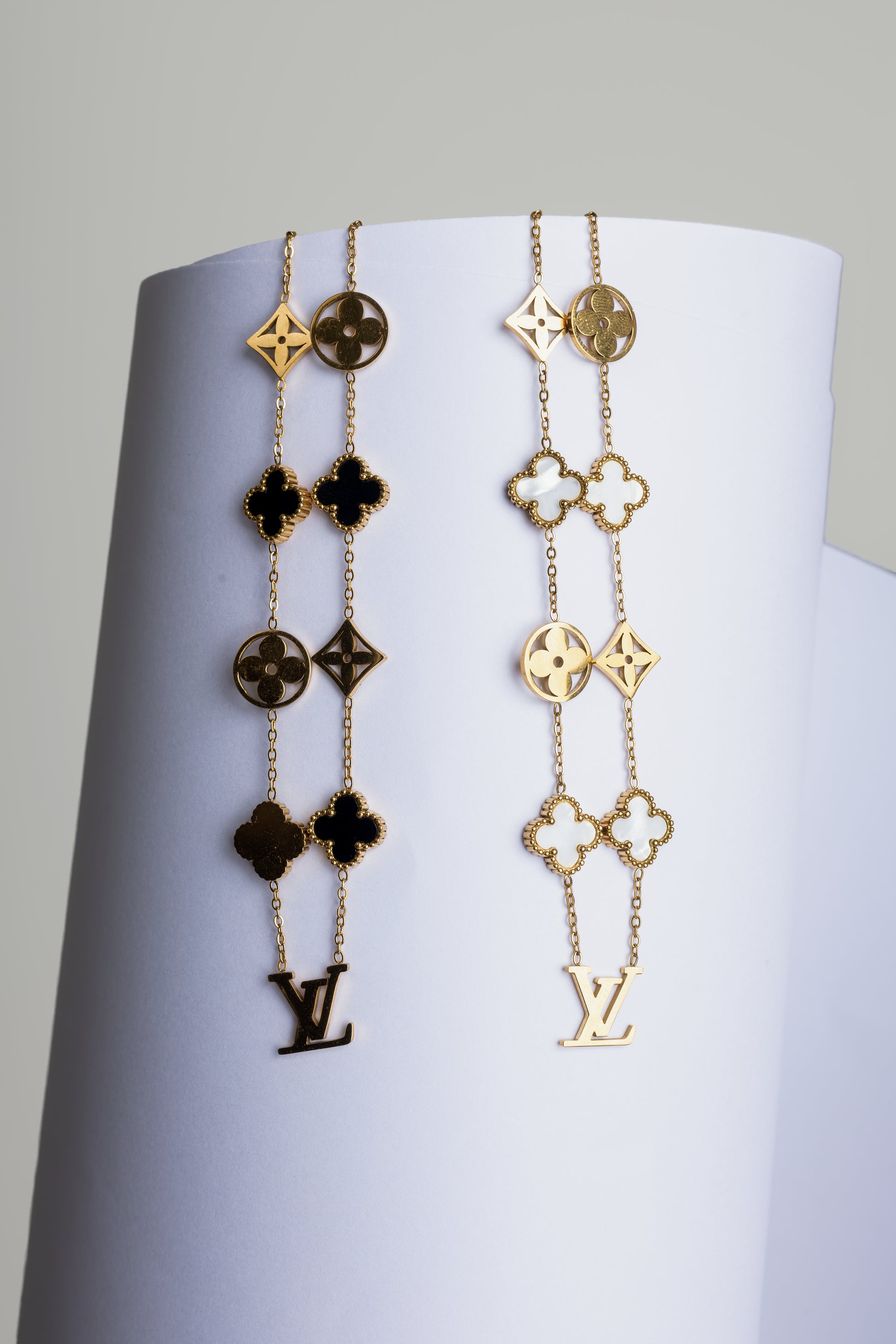 Con un diseño delicado de tréboles estilo LV, esta cadena no solo es un accesorio, ¡es una declaración de estilo! 🌸